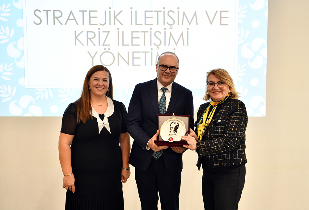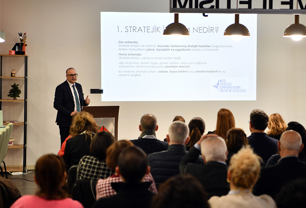 Assoc. Prof. Dr. Bora Bayraktar, a journalist and faculty member of our International Relations Department, was this month's guest at the traditional leadership and vision meetings held at the Design Factory in the Ataköy building of the Bakırköy Campus. Assoc. Prof. Dr. Bayraktar answered questions on the topic of Strategic Management and Crisis Communication Management. In her opening speech before the seminar, our Rector, Prof. Dr. Fadime Üney Yüksektepe stated, “Educational management, by its very nature, is a field intertwined with multiple generations. Our work is a multifaceted area. We value effective communication with young people, researchers, scientists and thinkers, stakeholders from the business world and civil society organizations. Furthermore, we are in an era that necessitates awareness in risk and crisis management. In this regard, the seminar by our esteemed professor from the Department of Political Science and International Relations, Assoc. Prof. Dr. Bora Bayraktar, has been a very valuable guide for us.” Assoc. Prof. Bora Bayraktar: “Strategic communication is not a promotional activity, it is a form of governance” Speaking at a seminar on Strategic Communication and Crisis Communication Management, Assoc. Prof. Dr. Bora Bayraktar emphasized that communication today has moved beyond being limited to message transmission and has transformed into a governance tool. Assoc. Prof. Dr. Bayraktar defined strategic communication as “a process carried out in a planned, measurable, and coordinated manner in line with predetermined goals”, while underlining that this approach should not be confused with advertising, press releases, or statements made during a crisis. Our professor stated, “For an institution to make a press release after a crisis is communication; anticipating the crisis and creating appropriate discourse sets is strategic communication.” Drawing attention to the fact that strategic communication is located at the intersection of strategy, communication, and management disciplines today, Assoc. Prof. Dr. Bayraktar stated that speed, consistency, and narrative continuity are among the key determinants. “Good strategic communication does not manage crises; it prevents crises from becoming destructive”, said Assoc. Prof. Dr. Bayraktar, and stated that this approach offers an indispensable framework for institutions and public administration. |